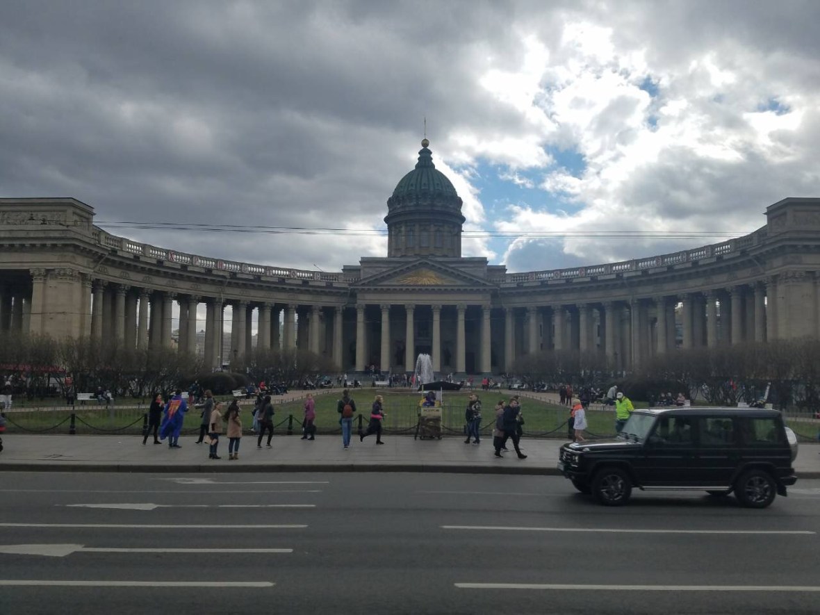 A sight of the Kazan Cathedral along Nevsky Prospekt. This neoclassical cathedral, partly modelled on St Peter’s in Rome, was commissioned by Tsar Paul shortly before he was murdered in a coup. Its 111m-long colonnaded arms reach out towards the avenue, encircling a garden studded with statues. Inside, the cathedral is dark and traditionally orthodox, with a daunting 80m-high dome. There is usually a queue of believers waiting to kiss the icon of Our Lady of Kazan, a copy of one of Russia’s most important icons.